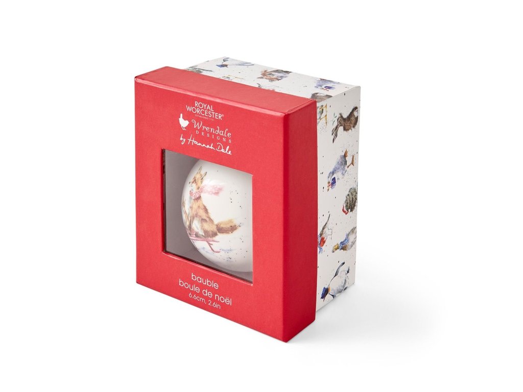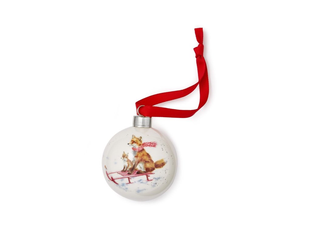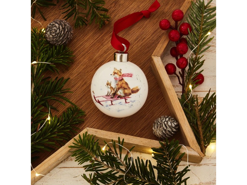 Wrendale vánoční porcelánová koulička 6,5cm The Sleigh Ride (Fox) lišky