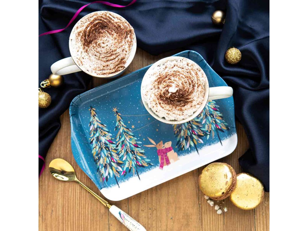 Odhalte nádech hřejivého kouzla s touto rozkošnou sadou 2ks porcelánových vánočních hrnků a mini podnosu z kolekce Sara Miller London Woodland Tales. Melaminový podnos a porcelánové hrnky jsou ideální pro strávení relaxačních chvil s milovanou osobou a jsou zdobeny roztomilým motivem králíků, kteří se mazlí pod měsíční oblohou. Malé hrnky zdobí detaily z 22karátového zlata, které dodávají okouzlující sadě elegantní kouzlo. Kouzelný dárek pro někoho výjimečného k těmto Vánocům.
