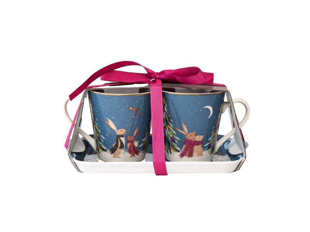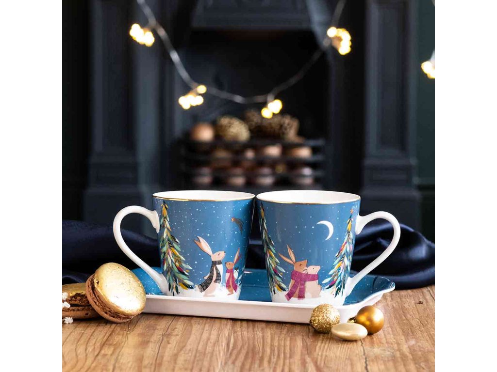 Portmeirion Sara Miller London Woodland Tales set 2ks vánočních hrnků 0,18l s táckem 21x14cm králíčci