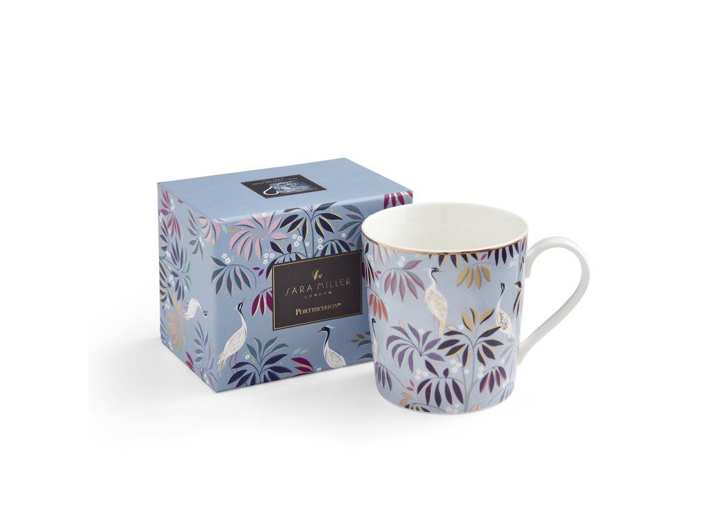 Sara Miller London Gift Mug porcelánový hrnek India Crane Garden Sky Blue 340ml jeřábi