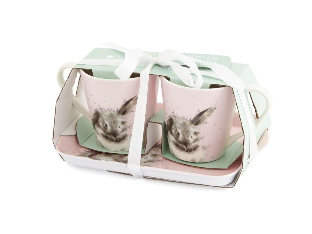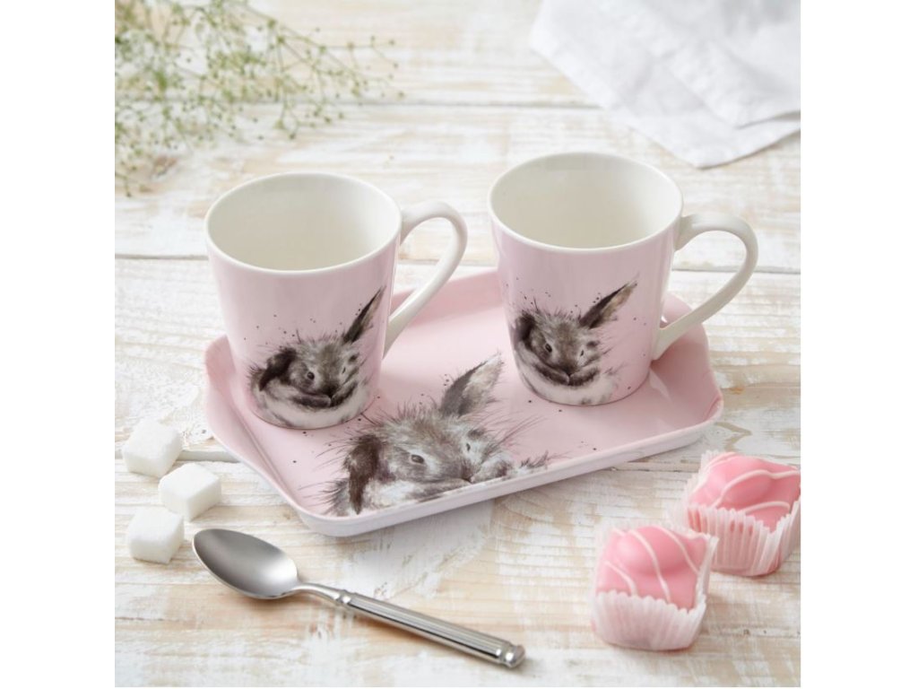 Wrendale Portmeirion Bathtime set 2ks hrnků 0,18l s táckem 21x14cm s králíčkem
