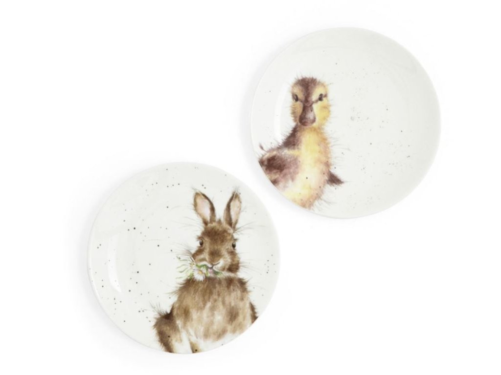 Wrendale set 2ks porcelánových talířů dezertních káčátko&králíček 16,5cm (Bunny& Duckling Just Hatched)