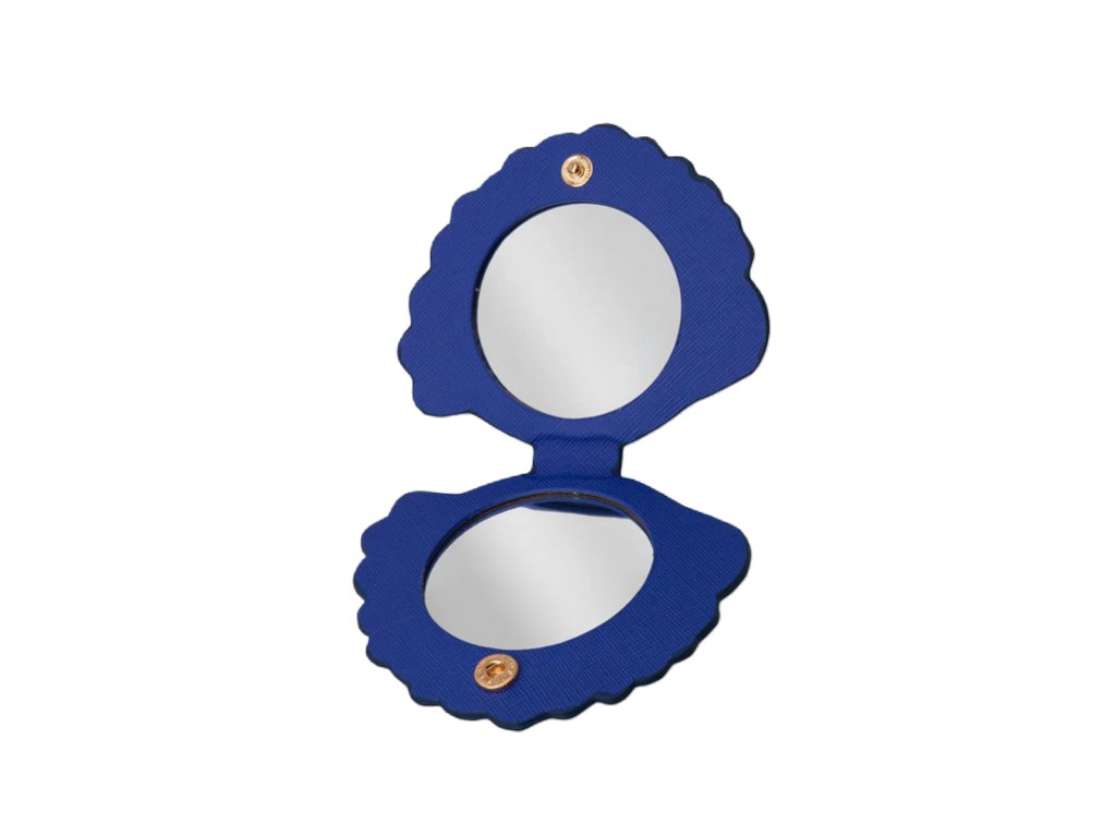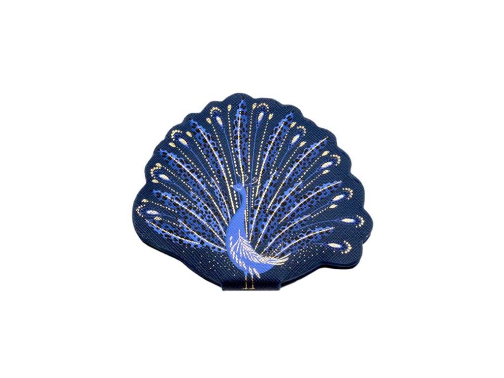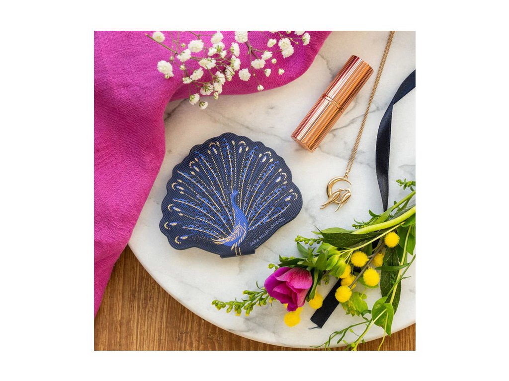 Sara Miller London Anniversary Collection kožené zrcátko 10x9cm Peacock Parade luxusní designová modro-zlatá