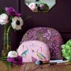 Sara Miller London Haveli Garden kosmetická taštička Dancing Cranes Luxury kožená 12x19cm malá luxusní designová zlato-růžová květinová s ptáčky