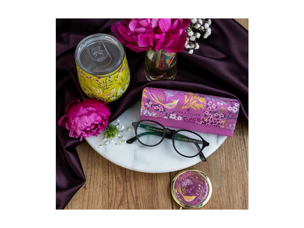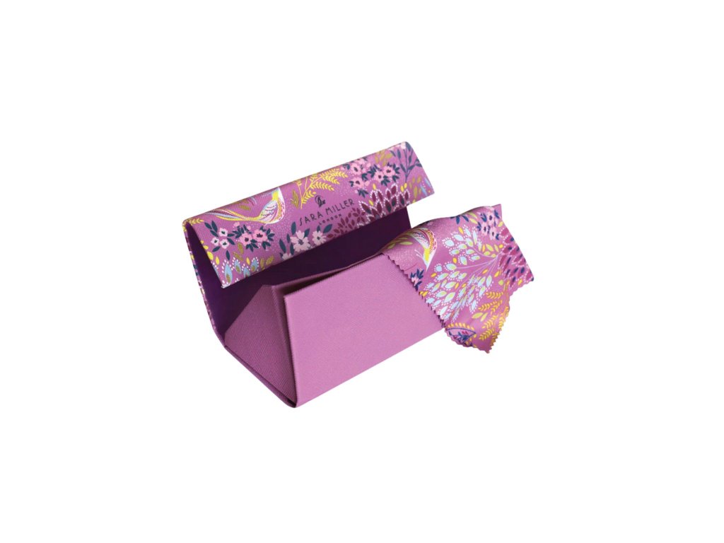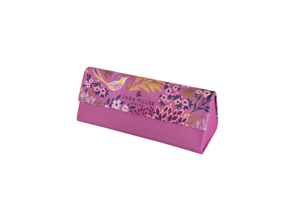 Sara Miller London Haveli Garden pouzdro na brýle kožené Mauve Songbird 16x7cm luxusní designové růžové květinové s ptáčky