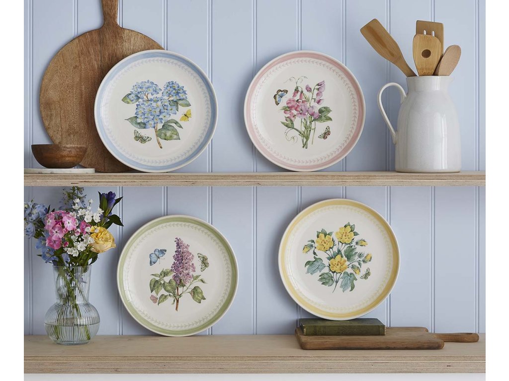 Snídaňové hrnky nabízíme ve 4 různých motivech: Bavlník (Cotton Flower), Šeřík (Garden Lilac), Hrachor (Sweetpea), Hortenzie (Hydrangea). Sadu si můžete doplnit také o dezertní talíře, snídaňové misky a jídelní talíře ve stejných motivech. Je na Vás, zda si motivy prokombinujete motivy mezi sebou nebo zda zvolíte jednu oblíbenou květinu na všech kusech stolního nádobí.