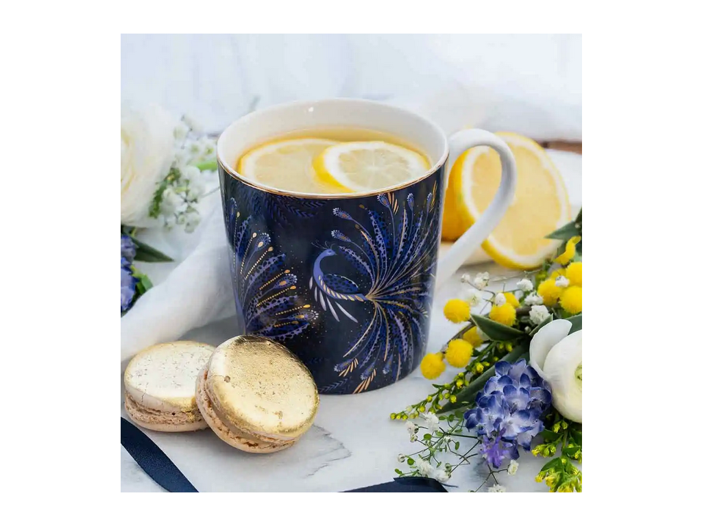 Portmeirion Sara Miller London Anniversary Collection porcelánový hrnek Peacock Parade 340ml temně modrý