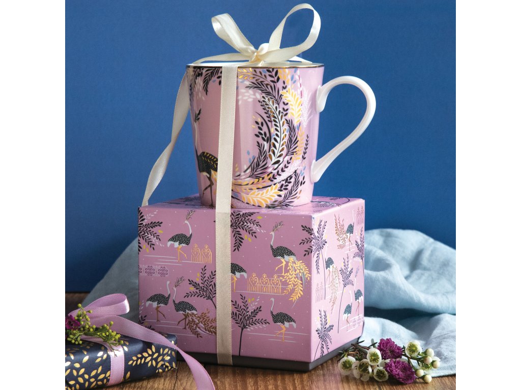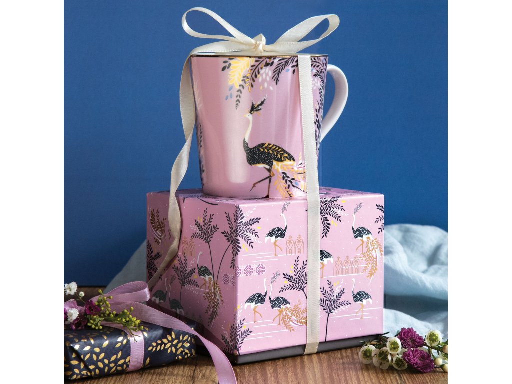 Nabízíme Vám nádherný růžovo-zlatý dámský hrnek se pštrosem se zlatými detaily z kolekce Sara Miller London Portmeirion Gift Mug Collection v designu ,, Ostrich Tails Feathers,,. Tento úžasný hrnek zobrazuje elegantního tančíco pštrosa s bohatým ocasem. Hrnek je ozdobený 22karátovým zlatem a zabalený v krásné dárkové krabičce. Stane se tak perfektním dárkem pro přátele a blízké. Hrnek Sara Miller London od Portmeirion přinese eleganci do vašeho domova a obdiv vašich přátel a rodiny.