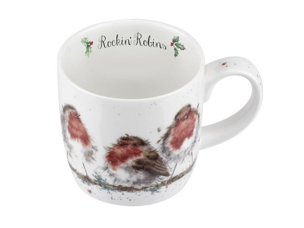 Wrendale vánoční porcelánový hrnek Rockin Robins s ptáčky 0,31l (Robin)