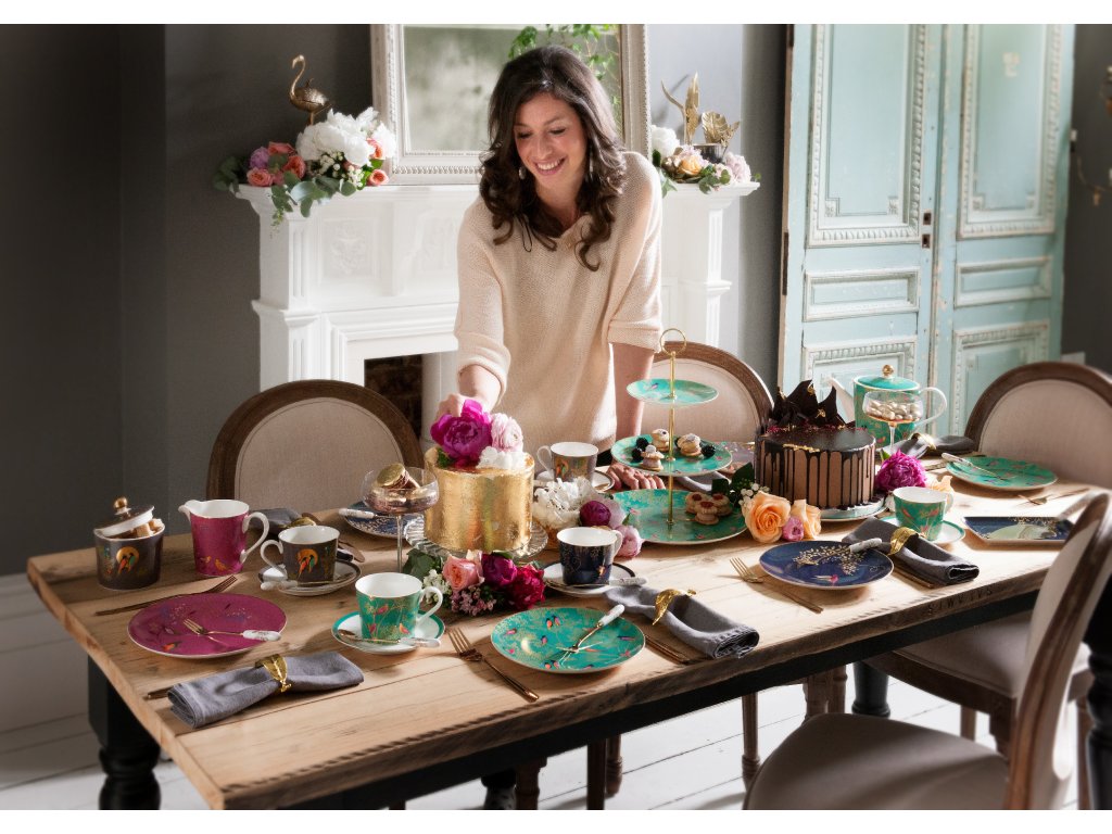 Oceňovaná britská návrhářka a zakladatelka společnosti Sara Miller London byla vždy inspirována svými dobrodružstvími po celém světě. Od složitého dekorativního řemeslného zpracování v palácích v Jaipuru až po senzační třešňový květ Sakura v Japonsku byla vždy nadšená objevováním světa a přinášením této inspirace zpět do svého londýnského studia, kde vše vkládá do vytváření skutečně krásných, sofistikovaných a elegantních návrhů. Studio Sara Miller London je uznáváno pro své použití bohatých textur a živých barev, to vše zdobené jemnými zlatými detaily, které se staly synonymem značky. Doufáme, že si užijete únik z každodennosti s jejími dekadentními a jedinečnými kolekcemi.