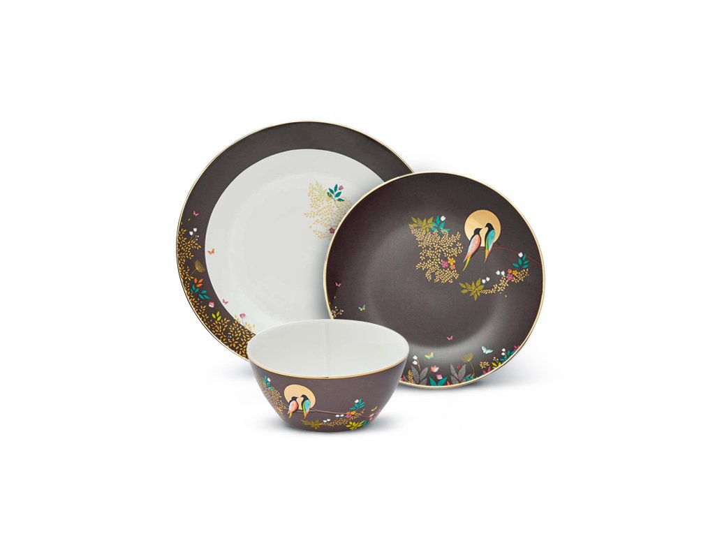 Portmeirion Sara Miller London Chelsea porcelánová jídelní sada pro 1 osobu 3ks hnědá se zlatem Birds in Moon