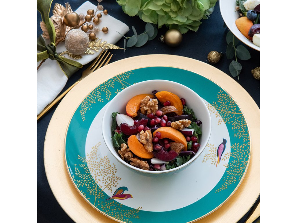 Nabízíme Vám krásnou růžovou snídaňovou misku z jemného porcelánu z kolekce Sara Miller London Chelsea , která zobrazuje zlaté ptáky ve větvích. Kolekce je zdobena 22karátovým zlatem.