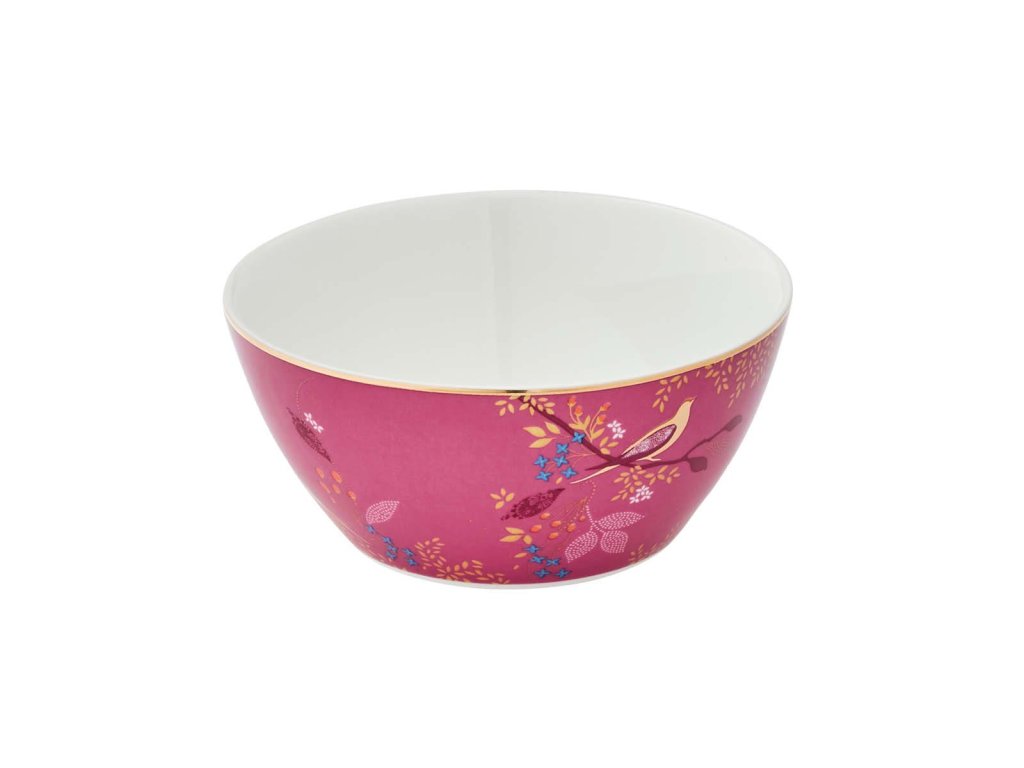 Portmeirion Sara Miller London Chelsea porcelánová snídaňová miska růžová se zlatem Pink Birds