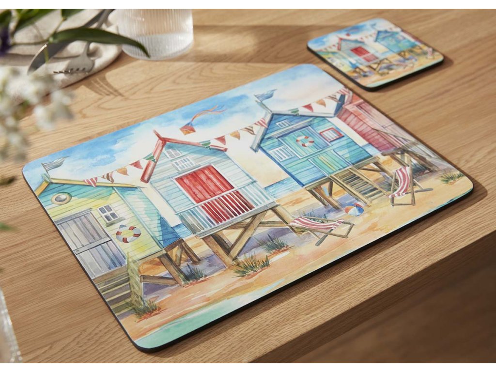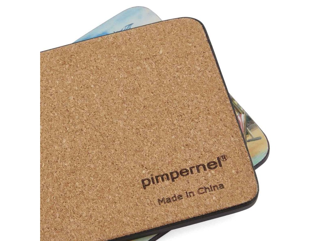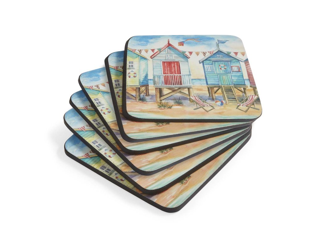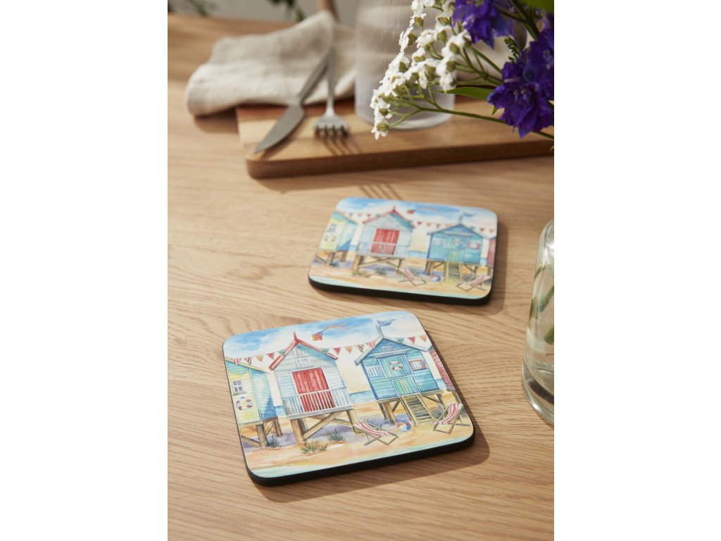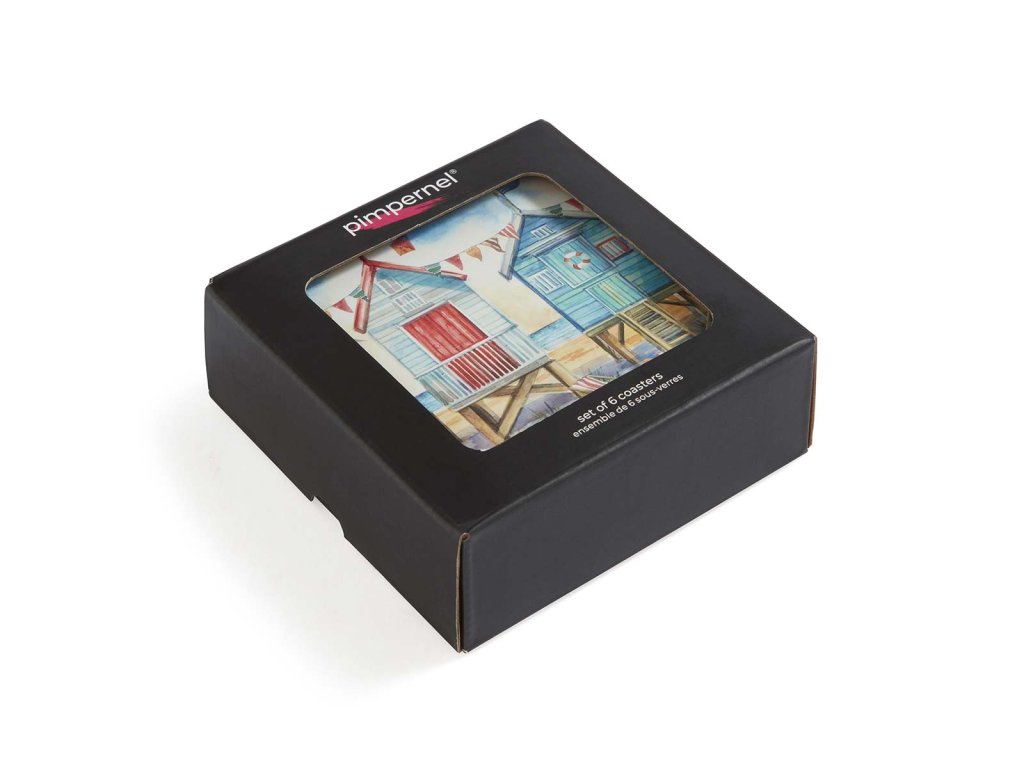 Pimpernel Beach Huts korkové podložky pod sklenice 10,5x10,5cm sada 6ks domečky