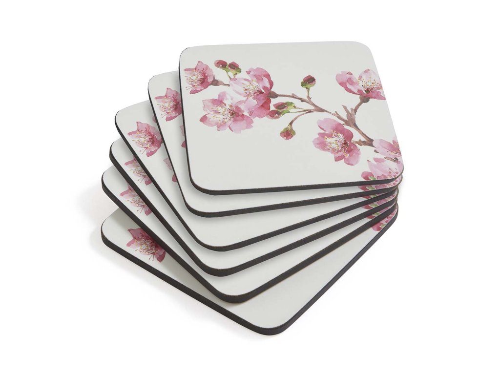 Pimpernel Pink Blossom korkové podložky pod sklenice 10,5x10,5cm sada 6ks květy třešně