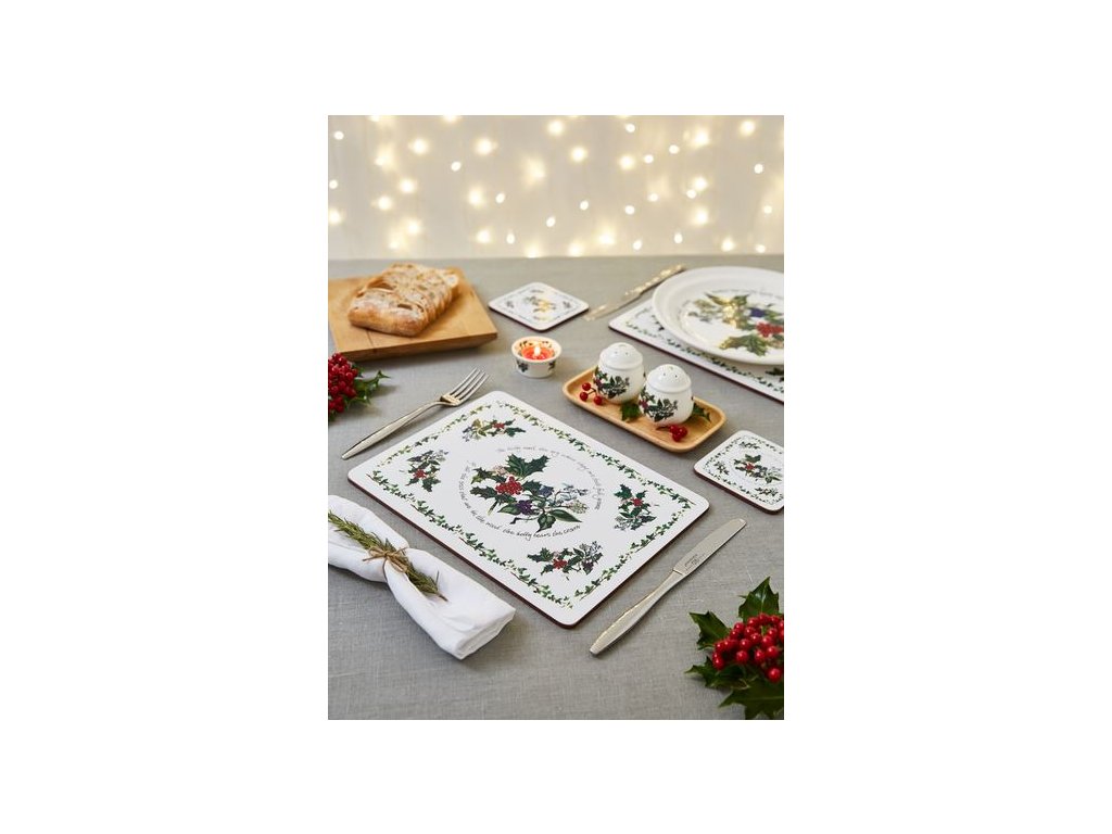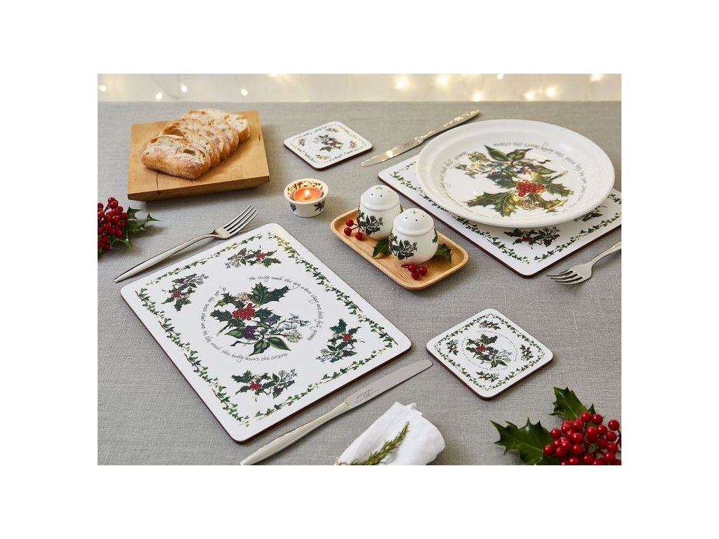 Portmeirion The Holly and The Ivy vánoční korková podložka 10,5x10,5cm 1ks JEDNOTLIVÉ cesmína