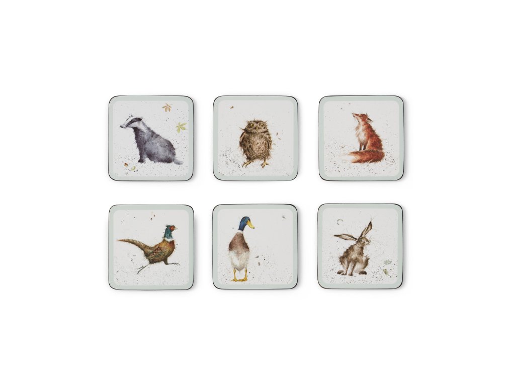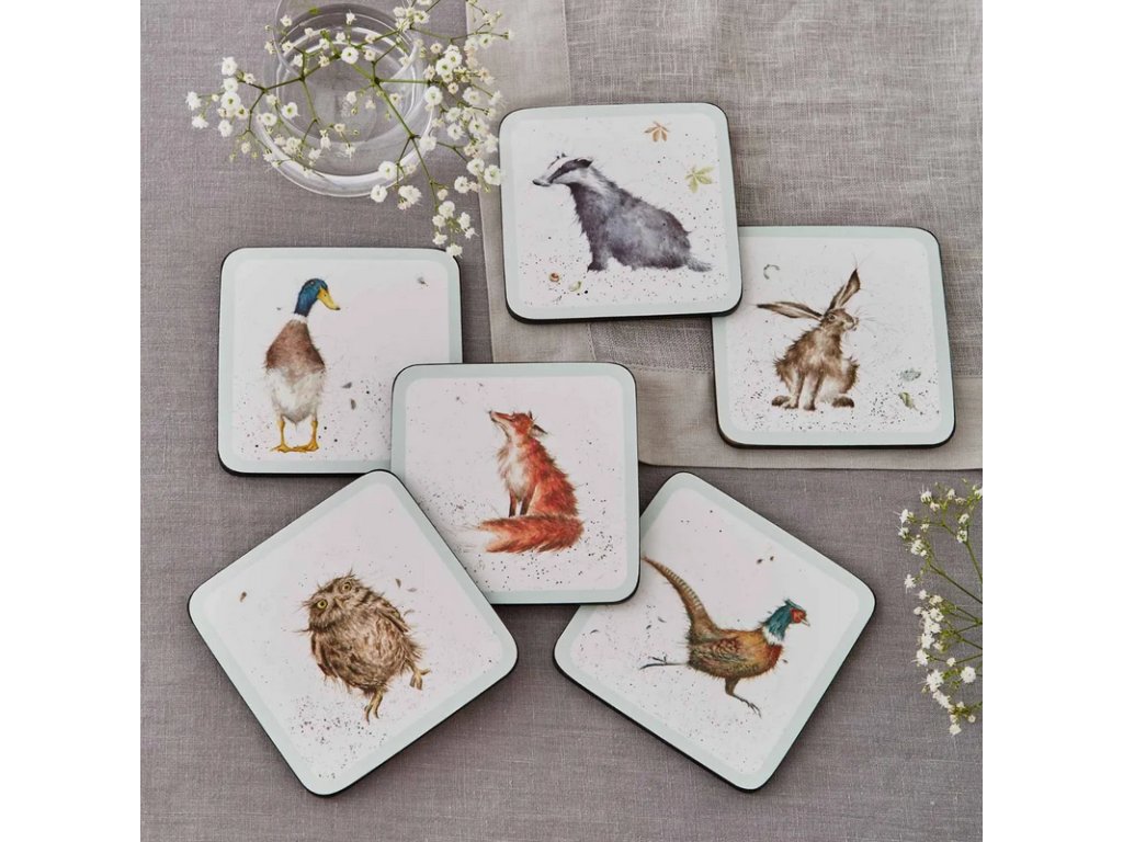 Wrendale Classic korkové podložky pod sklenice sada 6ks 10,5x10,5cm lesní zvířátka