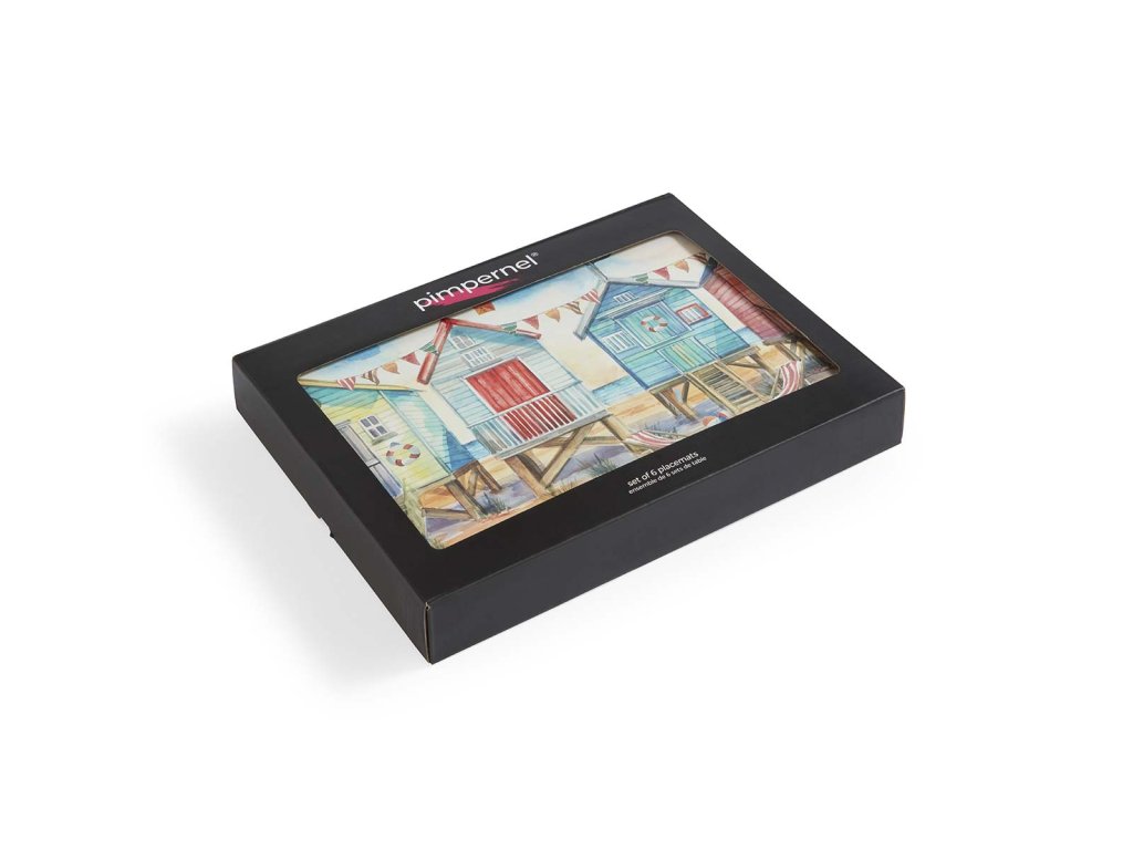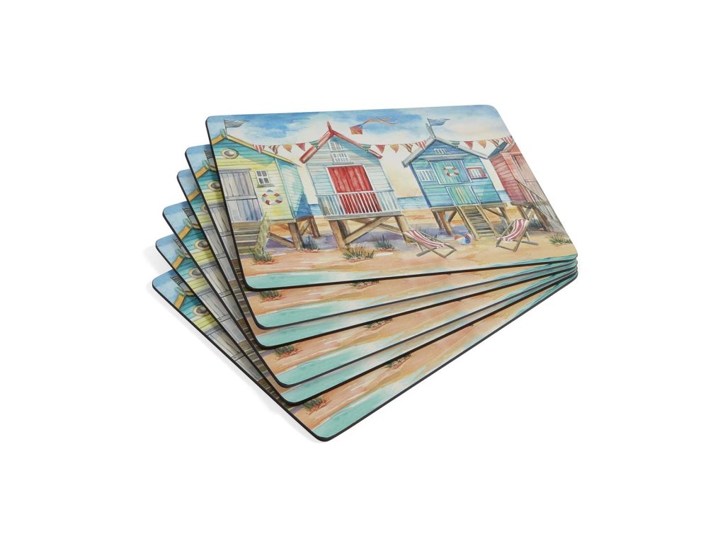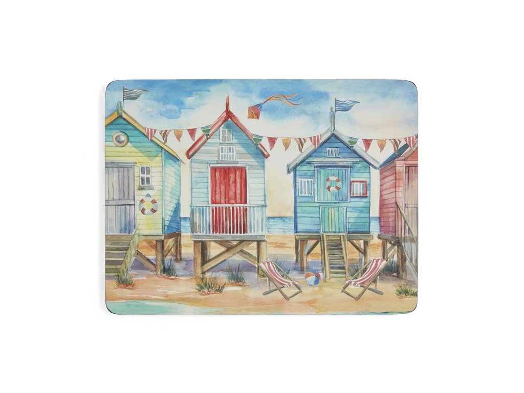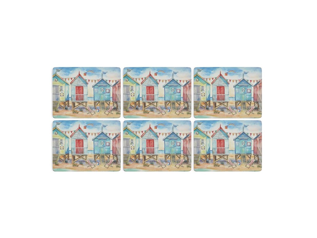 Pimpernel Beach Huts korkové prostírání 30,5x23cm střední sada 6ks domečky
