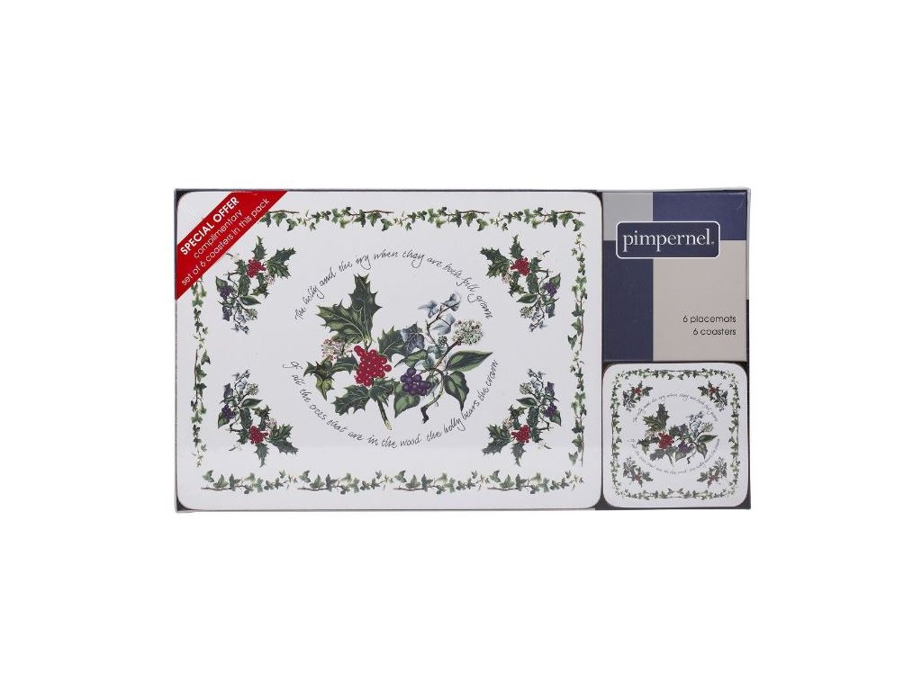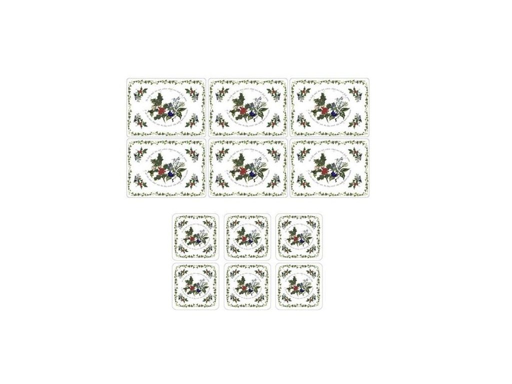 Portmeirion The Holly and The Ivy vánoční set 6ks korkové prostírání střední + 6ks podložek cesmína VÝHODNÉ BALENÍ