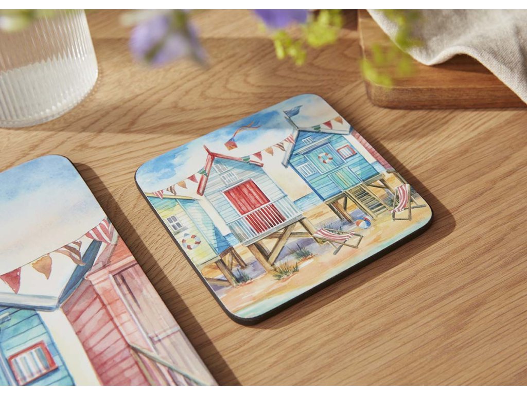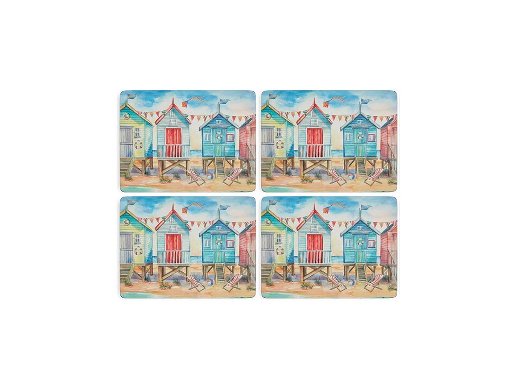 Pimpernel Beach Huts korkové prostírání 40x30cm velké sada 4ks domečky