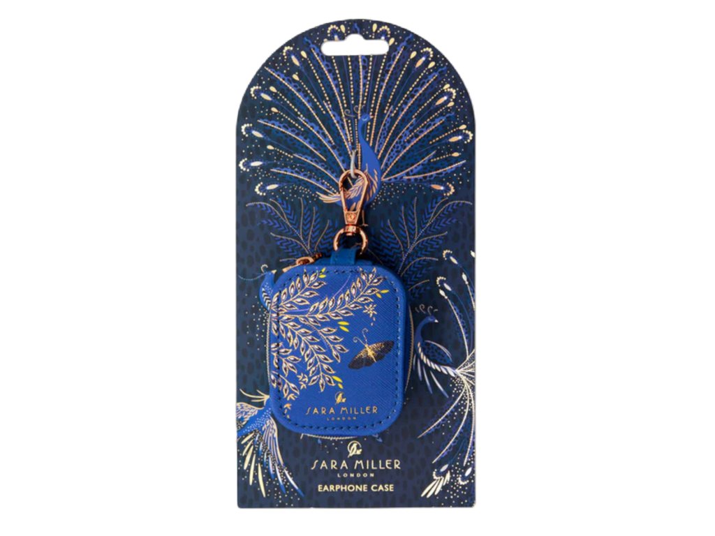 Sara Miller London Anniversary Collection kožené pouzdro na klíče&sluchátka 7,5x6cm Butterfly Trails luxusní designové modro-zlatá