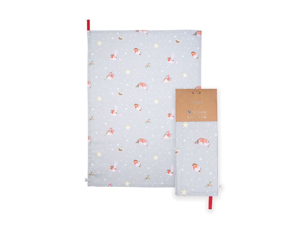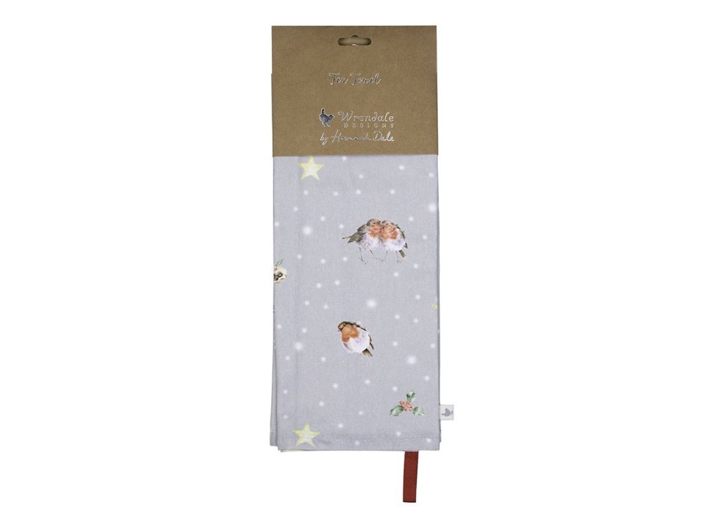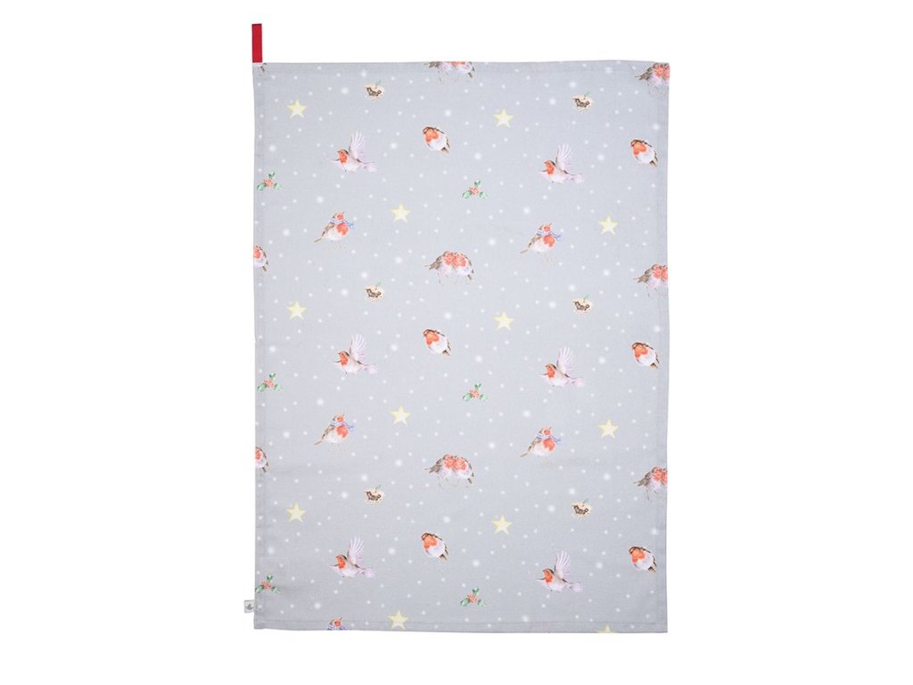 Wrendale textilní utěrka vánoční Birds Robin Season's Tweetings s ptáčky 100% bavlna 69x50cm