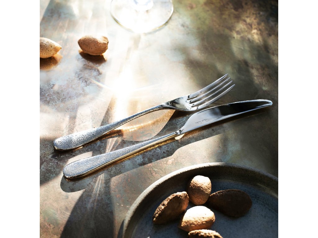 Nabízíme Vám nerezovou designovou předkrmovou lžíci z kolekce Sandstone. Design této kolekce je inspirován tím, jak kámen zvětrává a mění se v průběhu času. Povrch příborů vypadá erodovaný a zrnitý, ale je hladký na dotek. Jemná textura, která vychází z tradičních stříbrnických technik, je aplikována jako postupná mramorovaná povrchová úprava, která přechází do krku každého kusu. Texturovaný povrch jemně odráží světlo a vytváří na stole originální výraz jak vedle formálního nebo i neformálního nádobí. Vzor s hmatatelnou texturou s jedinečným tečkovaným efektem, který zvyšuje hmatatelnost rukojetí. Pískovec je štíhlý vzor a v ruce je příjemný a měkký.