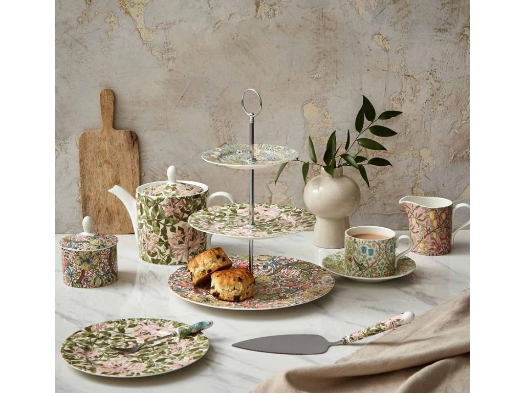My Vám v této kolekci nabízíme: čajovou konvici 1,1l Honeysuckle, cukřenku s víčkem 280ml Golden Lily, mléčenku 280ml Fruit nebo ve stejném Fruit motivu i obdélníkový servírovací talíř 21x31cm, set 4ks dezertních talířů 20cm a nim krásné dárkové sety 4ks dezertních vidliček nebo set 4ks čajových lžiček. Kolekci si můžete osvěžit úžasnými sety 2ks hrnků v dárkových balení s obsahy 340ml s motivy Seaweed&Pimpernel, Fruit & Honeysuckle, Blackthorn&Golden Lily, Willow Bough & Daffodil. Doladit můžete vše perfektně kvalitním textilem v podání set 2ks ubrousků 40x40cm v designu Strawberry Thief nebo Willow Bough, popř. středovým pásem 35x120cm Strawberry Thief. Dokonalost sama jsou korkové prostírání a podložky v obvyklých rozměrech - 6ks střední korkové prostírání 30,5x23cm Morris, 4ks velké korkové prostírání 40x30cm Morris či podtácky 10,5x10,5cm.