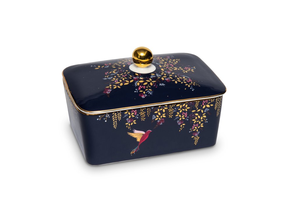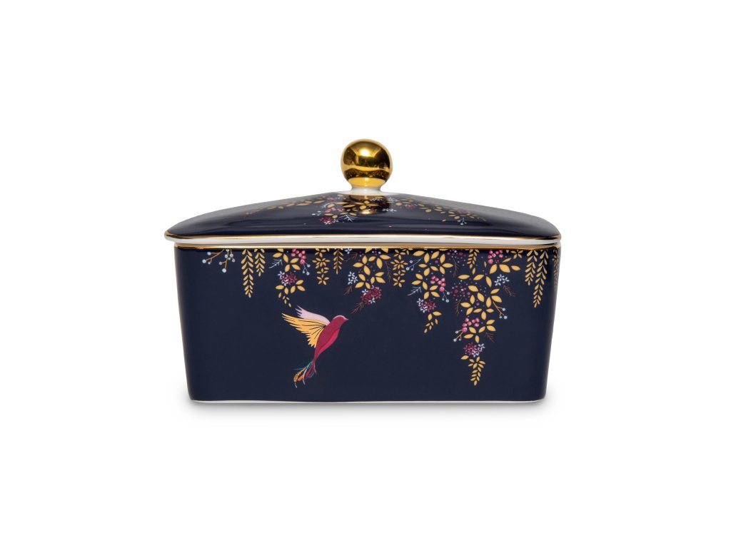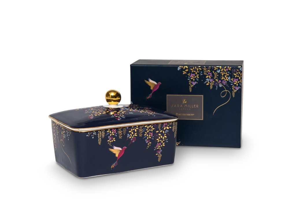 Portmeirion Sara Miller London Chelsea Navy Humming Bird porcelánová máslenka 16x12cm tmavě modrá