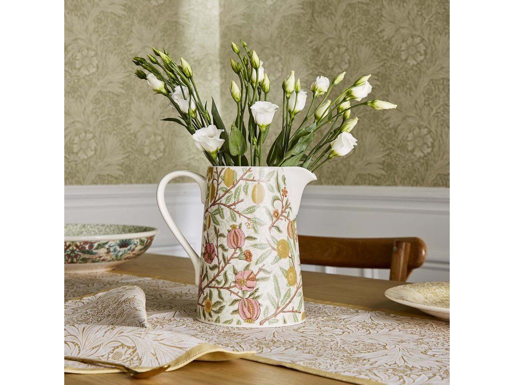 Nabízíme Vám krásný velký džbán s uchem v designu FRUIT ve stylu Morris & Co. z kolekce Simply Mixed. Bude patřit mezi originální kousky na Vašem stole. Je vhodný na zaharadu i do interiéru na čerstvé řezané nebo umělé dekorativní květiny. Nebo také jako pomocník při servírování osvěžující vody či limonád v letním období.