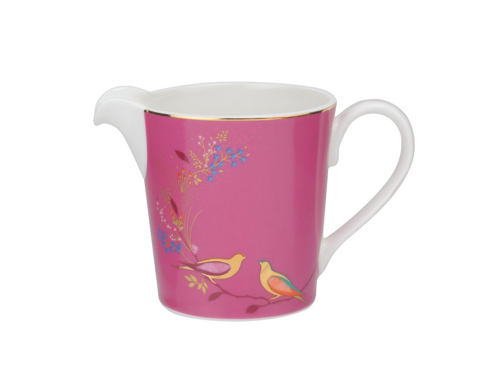 Nabízíme Vám krásnou porcelánovou mléčenku z kolekce Sara Miller London Portmeirion Chelsea Collection v bílo-růžové kombinaci s designem ptáků a listů v krásných drahokamových barvách. Je zdobený 22 karátovým zlatem a je dokonale dekadentní záminkou pro servírování zákusku v kteroukoli denní dobu.