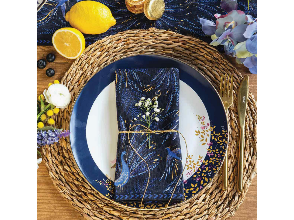 Portmeirion Sara Miller London Anniversary Collection Peacock Parade set 2ks textilních ubrousků 40x40cm 100% bavlna temně modrá