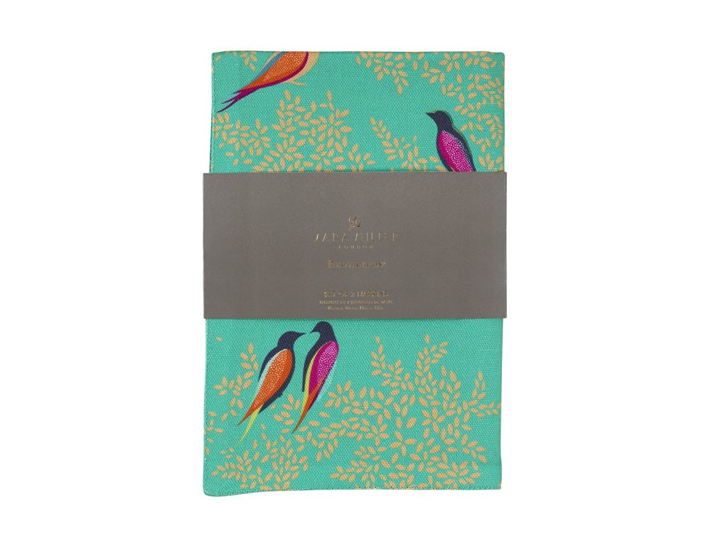 Nabízíme Vám krásnou sadu 2ks textilních ubrousků ze 100% bavlny v zelené barvě z kolekce Sara Miller London Chelsea Collection, která zobrazuje sedící zlaté ptáky ve větvích na zeleném pozadí. Funkční kousek, který lze použít i jako dekoraci. Sada také ideálním dárkem.