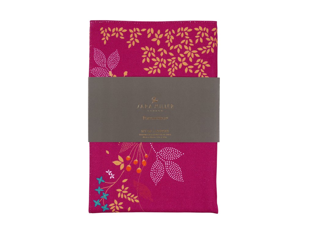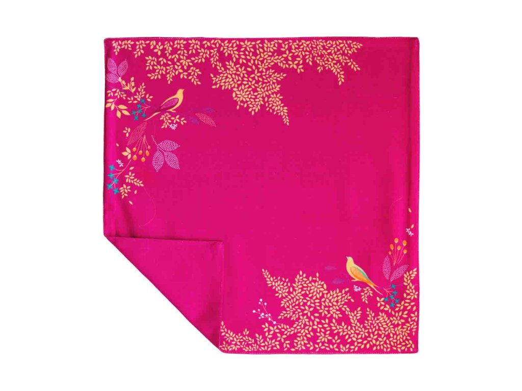 Nabízíme Vám krásnou sadu 2ks textilních ubrousků ze 100% bavlny v růžové barvě z kolekce Sara Miller London Chelsea Collection, která zobrazuje sedící zlaté ptáky ve větvích na zeleném pozadí. Funkční kousek, který lze použít i jako dekoraci. Sada také ideálním dárkem.