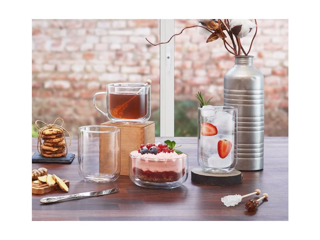 Elegantní sklenice na horké nápoje z dvoustěnného skla. Unikátní dvoustěnné a tepelně odolné borokřemičité sklo od špičkového výrobce Luigi Bormioli je nejen nádherně průhledné a dává vyniknout nápoji, ale také výjimečně pevné a odolné proti vysokým teplotám. Sklo má skvělé tepelně izolační vlastnosti, kdy nápoj vydrží výrazně déle teplý a nehrozí popálení o horký hrnek. Mezi vrstvami skla je totiž vakuum, které brání orosení. Sklenice s kávou vypadají vždy skvěle a příjemně se i drží.
