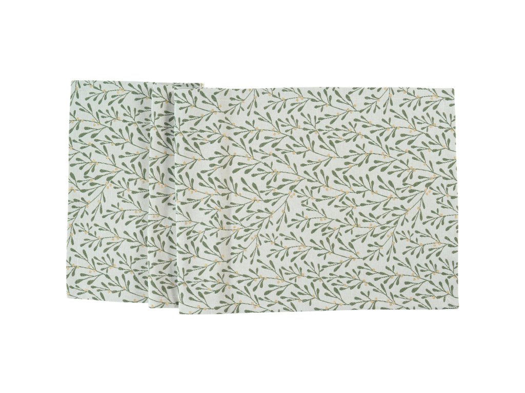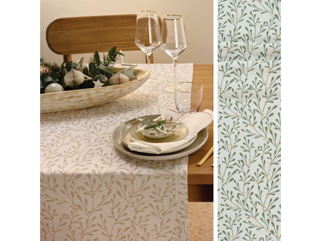 Nabízíme Vám krásný žakárový vánoční středový pás běhoun s půvabným vzorem jemných větviček jmelí v zelené barvě značky Sander, který je zároveň prošívaný zlatou třpytivou nití. Krásně doladí Váš interiér. Všechny produkty této řady mají vysokou kvalitu a snadno se udržují.