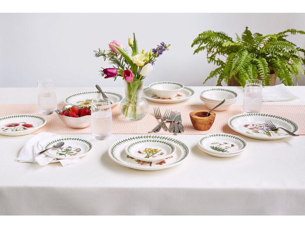 Velice rozsáhlá kolekce Botanic Garden firmy Portmeirion nabízí skutečnou britskou klasiku a oslavuje zakladatelku Portmeirion Susan Williams-Ellis. Řada Botanic Garden s kombinovanými vzory různých rostlin a květin je ideální pro klasické neformální stolování. Nadčasová klasika, Botanic Garden, je nejznámější sbírkou britského porcelánu a kameniny s krásnými květinovými motivy a vlajícími motýly. Tyto povznášející a barevné kombinace skvěle vypadají v moderním i klasickém interiéru. Okouzlí Vás nejen krásnými ilustracemi, ale hlavně svou pevností a odolnou glazurou, a proto je ideální pro každodenní použití. Kolekce se vyrábí již 45 let a je naprostou nadčasovou klasikou.