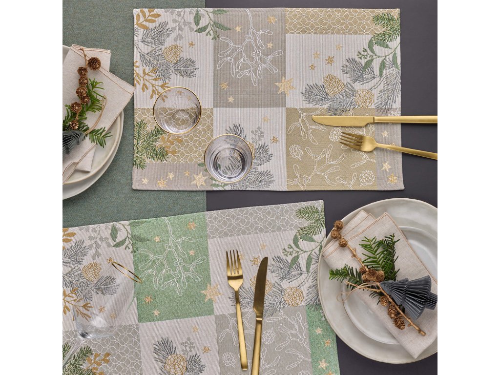 Sander Belle Patch Green vánoční gobelínový ubrus 96x96cm sage 55