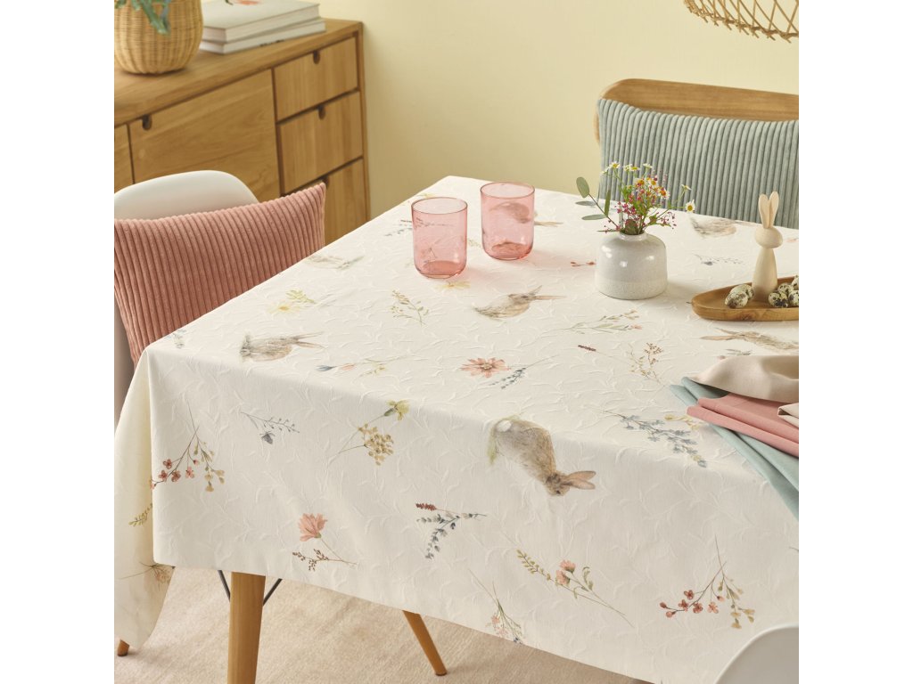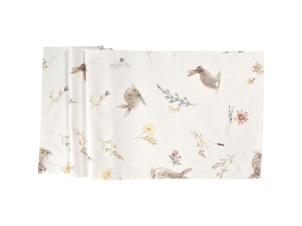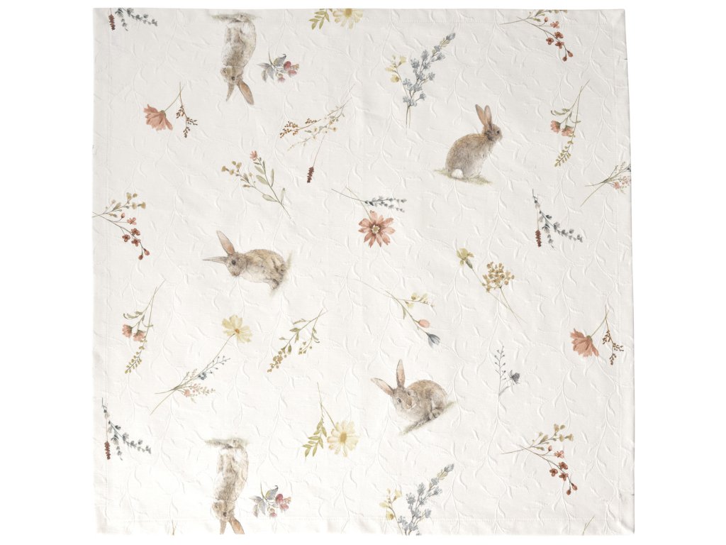 Textilní ubrus čtverec velký Sander Bunny Bloom s krásným motivem drobných kytiček a zajíčka. Tento ubrus je originální svým provedením, kde kromě krásného vzoru můžete obdivovat i 3D zpracování vláken. Všechny produkty této řady mají vysokou kvalitu a snadno se udržují.