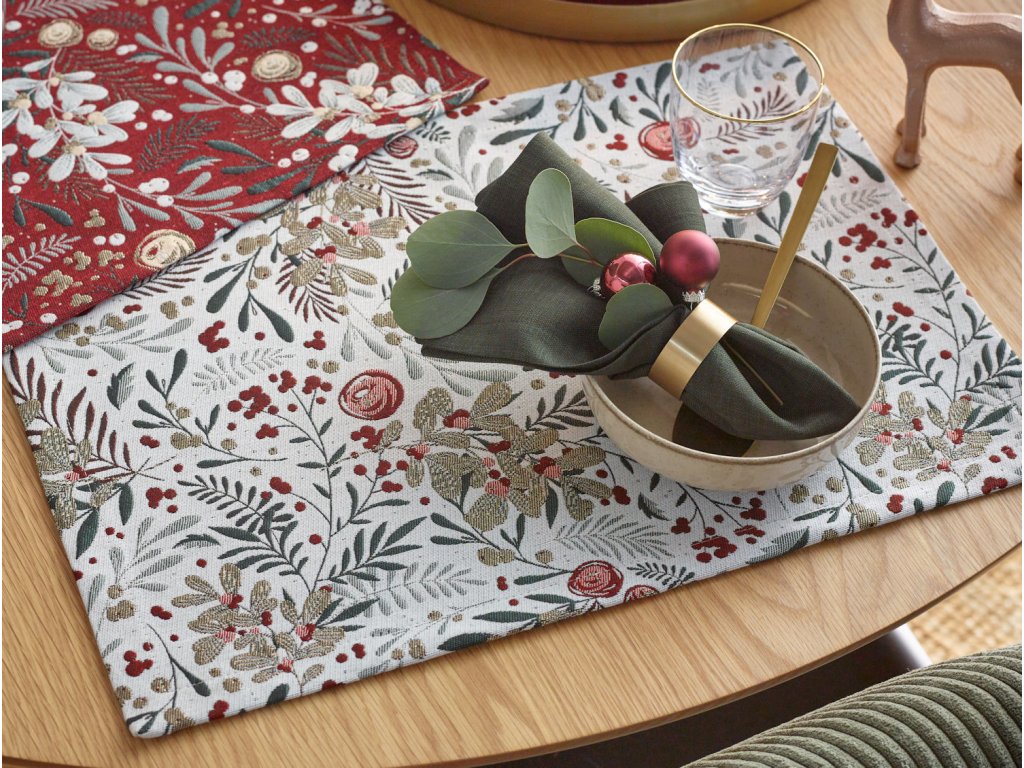 Nabízíme Vám krásný vánoční textilní ubrus čtverec malý žakárového typu se vzorem jmelí a různých vánočních větviček, značky Sander. Krásně doladí Váš interiér. Všechny produkty této řady mají vysokou kvalitu a snadno se udržují. Jedná o produkt z řady Jacquard (žakár), což jsou pevnější materiály.