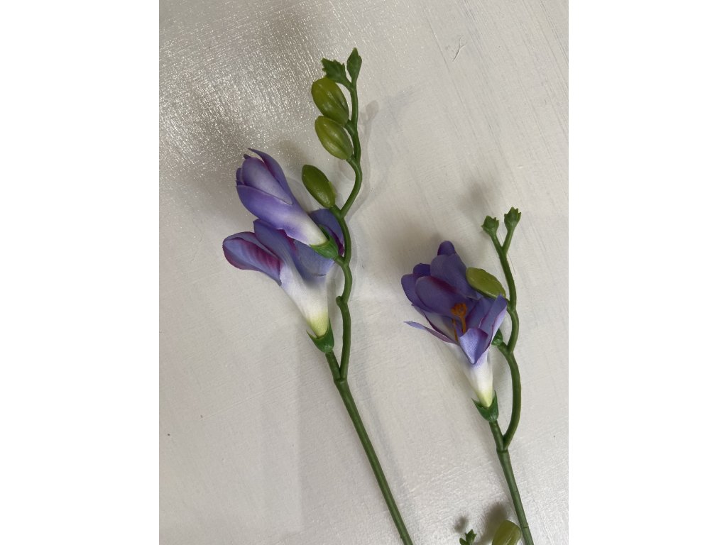 Nabízíme Vám krásnou umělou dekoraci Frezie ve fialovo-modré barvě, která rozzáří Váš interiér. Doporučujeme kupovat ve více kusech nebo samostatně.
