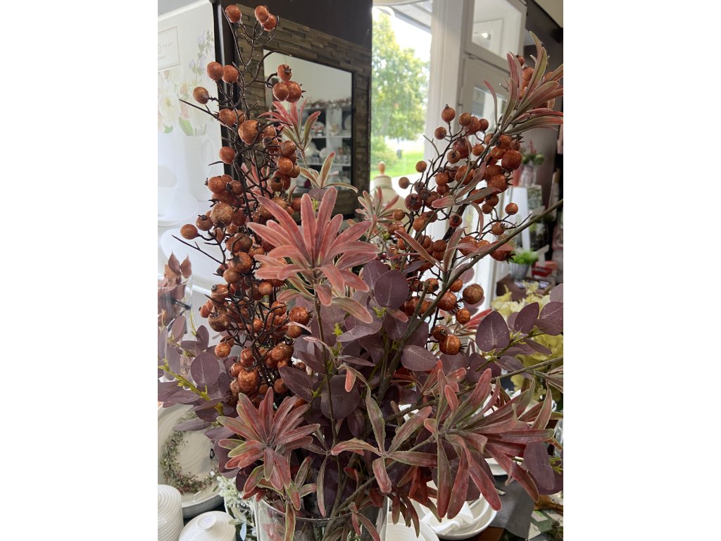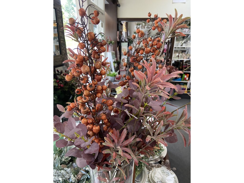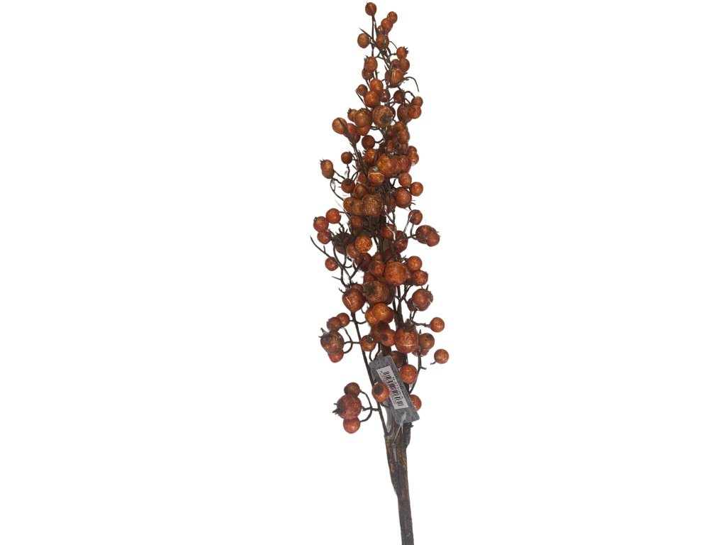 Nabízíme Vám krásnou umělou dekoraci větvičky s kuličkami po celé délce (bez listů) v podzimní hnědo-oranžové barvě. Větvičky nemají přesně stejný počet kuliček, avšak velikostně jsou si velice podobné. Toto není důvod k reklamaci. Krásně se dá kombinovat s jinými podzimními květinami. Pokud máte nižší vázu, je možné stonky ohnout a vytvořit tak výplň vázy.