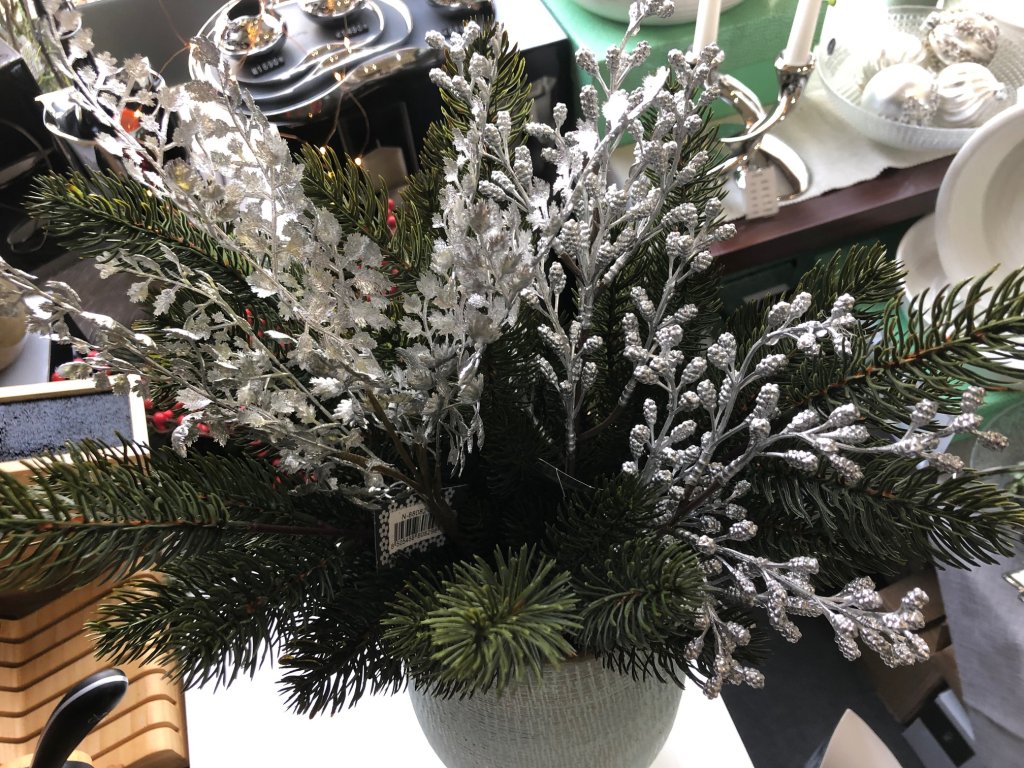Na fotografii 1. je společně s jedlovými větvičkami 5ks House of Season jedlová větvička 50cm, a 1ks Innovative Willow Buds větvička stříbrná.