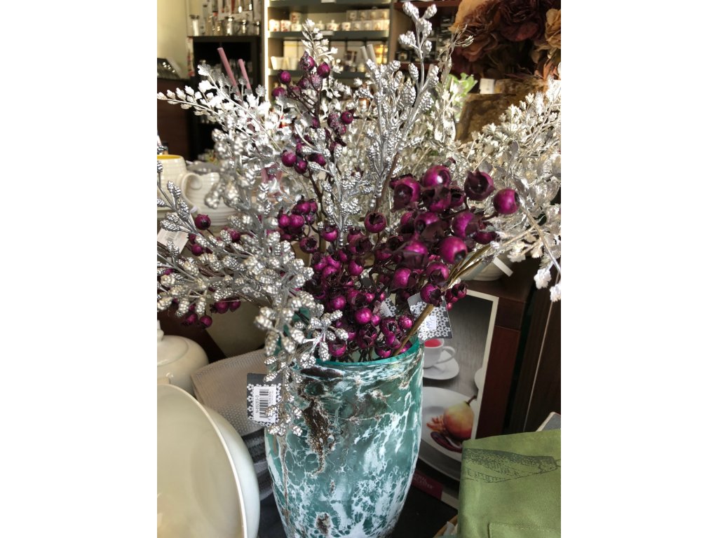 Na fotografii 2. je společně ve váze Mica Decorations Aya Eivorm Ice Green skleněná váza 30cm dohromady 5ks větvička Athyrium, 3x Innovation větvička Berry Fialové.