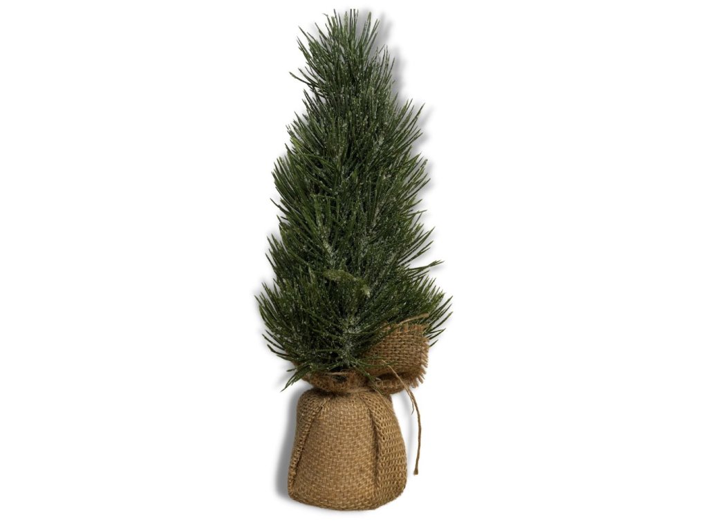 Innovative borovicový stromek v jutovém pytliku 32cm, umělá dekorace
