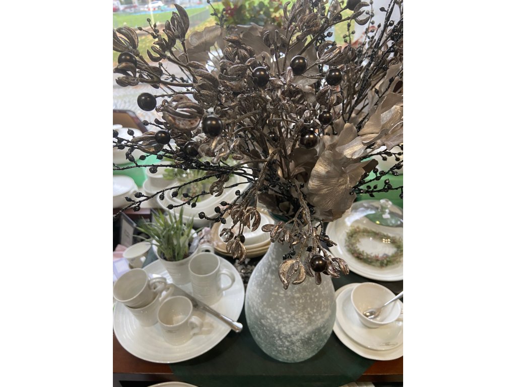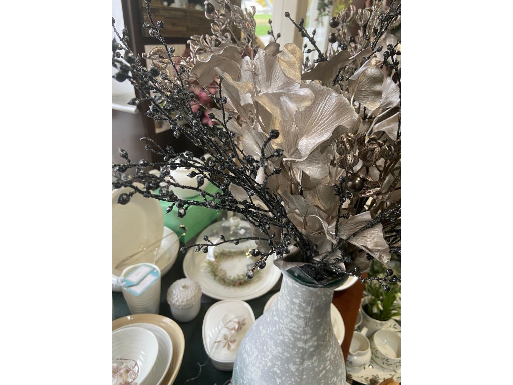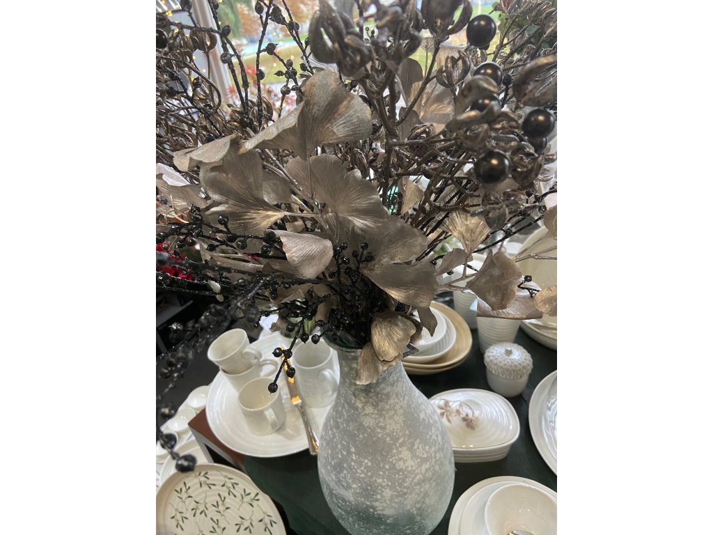 Na fotografii společně s větvičkami - Innovative Berry Black divoké bobule šedo-černé stříbrné zimní a Innovative Pearl Marne Větev měděná 75cm. Váza dostupná pouze na kamenné prodejně.