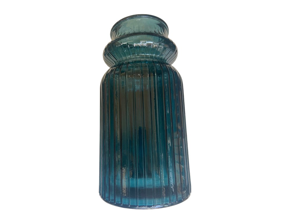 Nabízíme Vám krásnou skleněnou vázu originálního zvlněného tvaru ze skla v krásné modré barvě s hmatatelnou strukturou na povrchu v podobě proužku. Pro svou lehkost je ideální do interiéru na řezané nebo dekorativní umělé květiny.