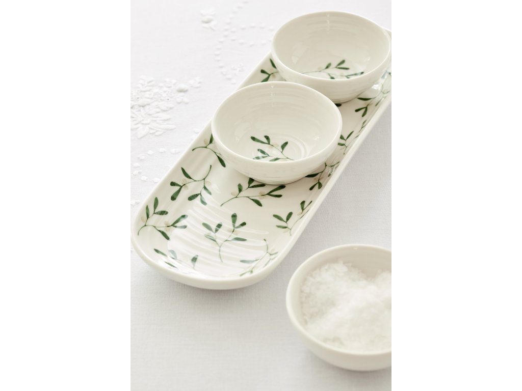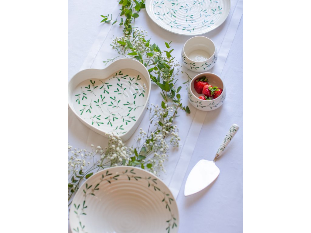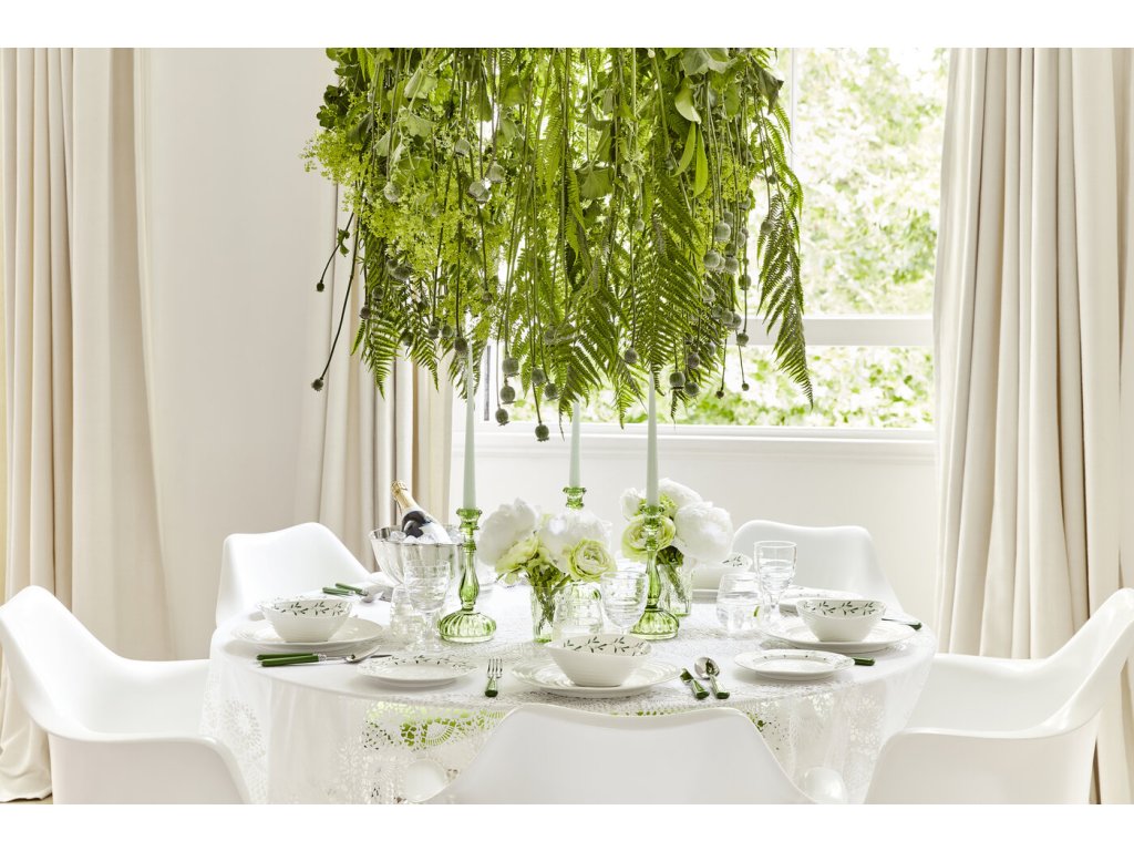 Nabízíme Vám krásný velký textilní ubrus s motivem drobných větviček jmelí, který ideálně doplní servírování na Vašem stole. Jedná se o velký ubrus přes celý stůl vhodný pro slavnostní příležitosti. Můžete si vytvořit vlastní domácí kolekci, kterou si rozšíříte o servírovací talíř oválný, podnos na dort. Vaše série může obsahovat i mléčenkou, sadu 2ks šálků na espresso, dezertním talíř či konické hrnky na čaj.
