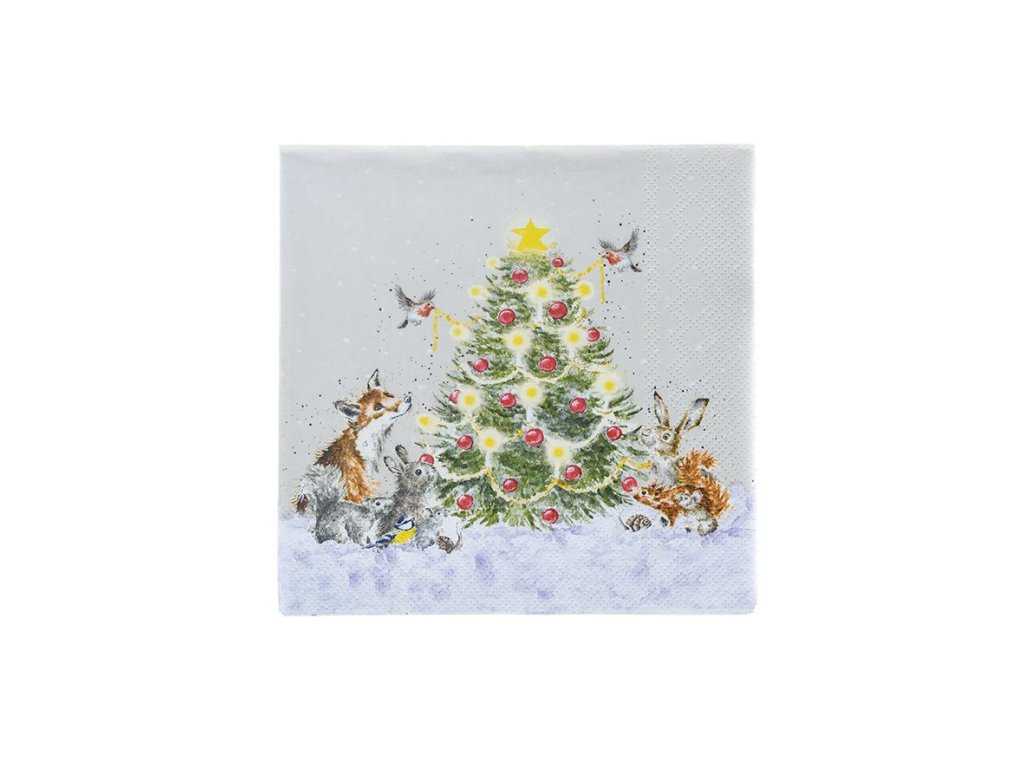 Wrendale papírové ubrousky Oh Christmas Tree Woodland zvířátka&vánoční stromek 24x24cm 3-vrstvé 20ks