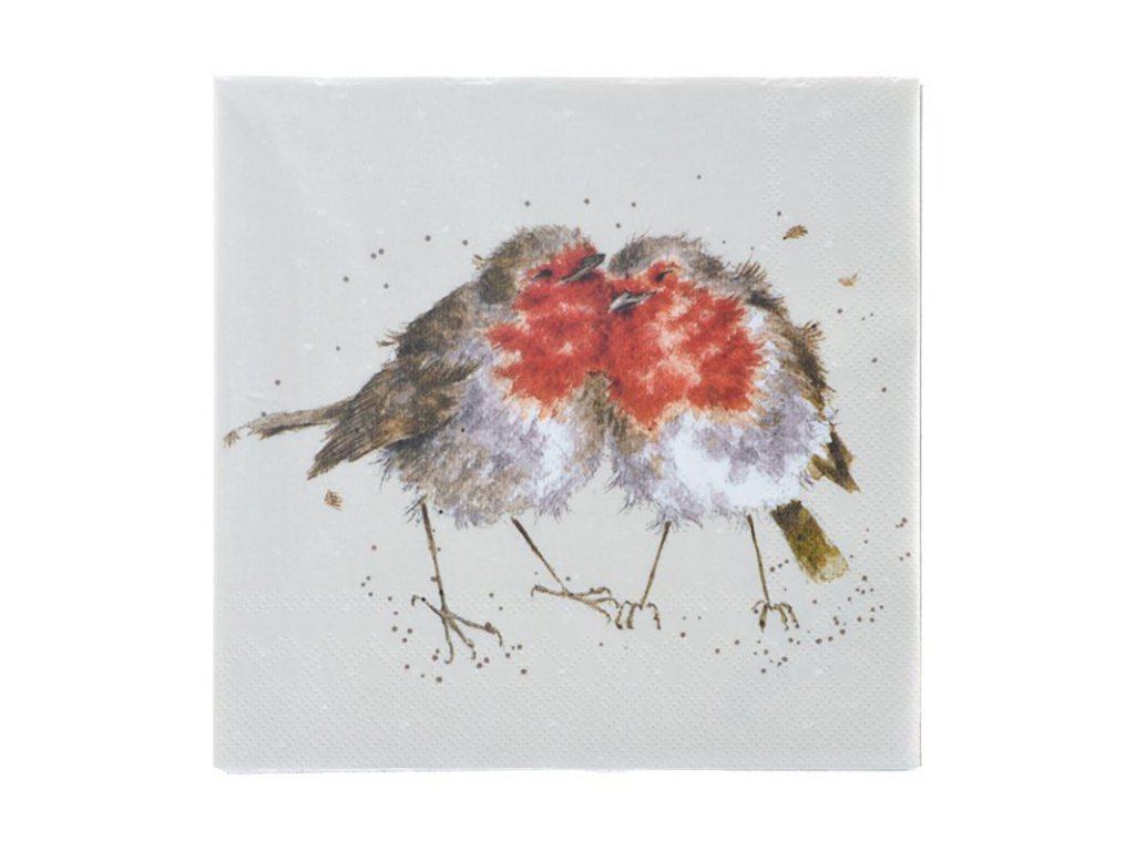 Wrendale papírové ubrousky Robin Snuggled Together ptáček Červenka 33x33cm 3-vrstvé 20ks